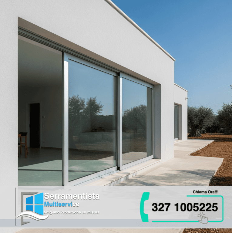 Se cerchi un preventivo per vetrate scorrevoli a Aradeo, affidati all’esperienza artigianale del Serramentista Multiservice SRLS, specializzato nella produzione su misura di vetrate scorrevoli per abitazioni, locali commerciali e spazi esterni. Da oltre 40 anni operiamo nel Salento, realizzando vetrate scorrevoli in alluminio, PVC o legno con vetri di sicurezza stratificati o temperati, ideali per balconi, verande, terrazze, giardini e pergolati. Il nostro servizio è completo: dalla consulenza personalizzata e sopralluogo gratuito, fino alla produzione interna e alla posa in opera eseguita da tecnici qualificati. Ogni progetto è unico e viene realizzato in base alle esigenze del cliente, sia in termini di estetica, funzionalità e budget. Il preventivo è dettagliato, chiaro e sempre senza impegno, comprensivo di materiali, lavorazioni e installazione. Garantiamo trasparenza, qualità artigianale e tempi certi di consegna, con soluzioni che valorizzano ogni ambiente e aumentano il comfort abitativo.