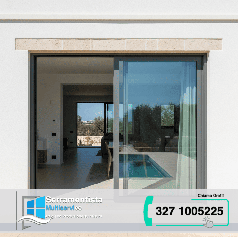 Il Serramentista Multiservice SRLS produce vetrate scorrevoli su misura a Leverano, offrendo soluzioni artigianali perfette per ambienti interni ed esterni. Siamo un’azienda del Salento con oltre 40 anni di esperienza artigiana, specializzata nella realizzazione di vetrate scorrevoli personalizzate, ideali per balconi, verande, terrazze, giardini, pergolati e ambienti commerciali. Le nostre vetrate sono costruite con profili in alluminio, PVC o legno di alta qualità e vetri di sicurezza temperati o stratificati, garantendo resistenza, isolamento termoacustico e durata nel tempo. Il sistema scorrevole consente apertura fluida, minimo ingombro e massima luminosità, rendendo ogni spazio più vivibile in ogni stagione. Ogni vetrata viene realizzata artigianalmente su misura, secondo le specifiche esigenze del cliente, con finiture personalizzabili per adattarsi a qualsiasi stile architettonico. Il nostro artigiano esperto cura ogni fase del lavoro: dal sopralluogo gratuito alla posa in opera, passando per preventivo chiaro e senza impegno.