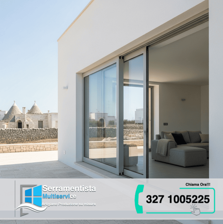 Se cerchi un preventivo per vetrate scorrevoli a Ruffano, affidati all’esperienza artigianale del Serramentista Multiservice SRLS, specializzato nella produzione su misura di vetrate scorrevoli per abitazioni, locali commerciali e spazi esterni. Da oltre 40 anni operiamo nel Salento, realizzando vetrate scorrevoli in alluminio, PVC o legno con vetri di sicurezza stratificati o temperati, ideali per balconi, verande, terrazze, giardini e pergolati. Il nostro servizio è completo: dalla consulenza personalizzata e sopralluogo gratuito, fino alla produzione interna e alla posa in opera eseguita da tecnici qualificati. Ogni progetto è unico e viene realizzato in base alle esigenze del cliente, sia in termini di estetica, funzionalità e budget. Il preventivo è dettagliato, chiaro e sempre senza impegno, comprensivo di materiali, lavorazioni e installazione. Garantiamo trasparenza, qualità artigianale e tempi certi di consegna, con soluzioni che valorizzano ogni ambiente e aumentano il comfort abitativo.