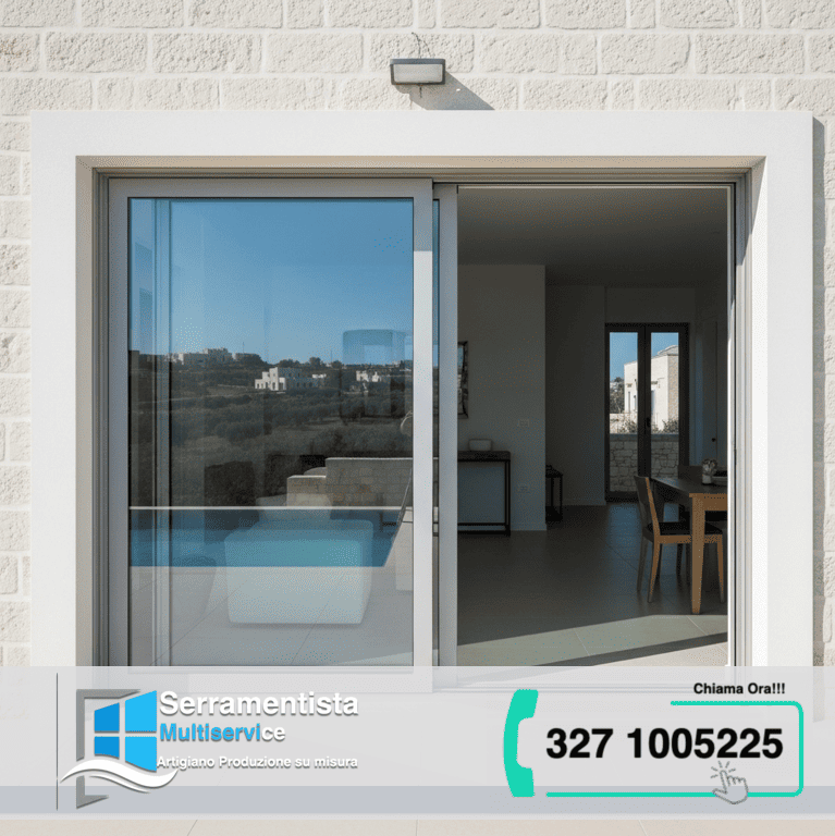 Il Serramentista Multiservice SRLS produce vetrate scorrevoli su misura a Ugento, offrendo soluzioni artigianali perfette per ambienti interni ed esterni. Siamo un’azienda del Salento con oltre 40 anni di esperienza artigiana, specializzata nella realizzazione di vetrate scorrevoli personalizzate, ideali per balconi, verande, terrazze, giardini, pergolati e ambienti commerciali. Le nostre vetrate sono costruite con profili in alluminio, PVC o legno di alta qualità e vetri di sicurezza temperati o stratificati, garantendo resistenza, isolamento termoacustico e durata nel tempo. Il sistema scorrevole consente apertura fluida, minimo ingombro e massima luminosità, rendendo ogni spazio più vivibile in ogni stagione. Ogni vetrata viene realizzata artigianalmente su misura, secondo le specifiche esigenze del cliente, con finiture personalizzabili per adattarsi a qualsiasi stile architettonico. Il nostro artigiano esperto cura ogni fase del lavoro: dal sopralluogo gratuito alla posa in opera, passando per preventivo chiaro e senza impegno.